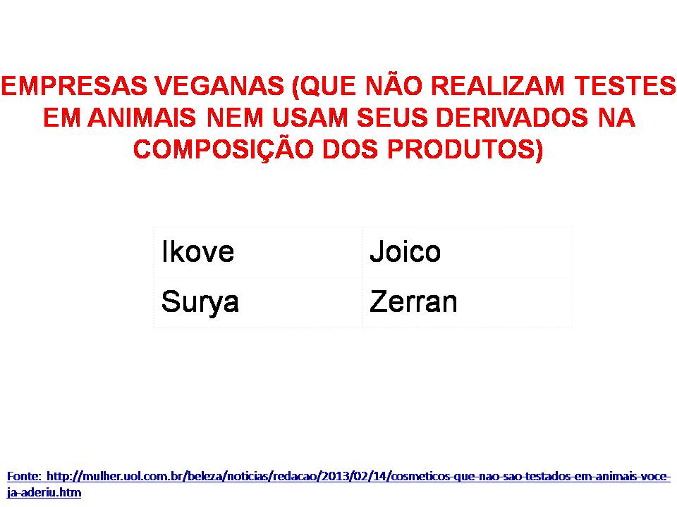 O tema já é bem mais avançado nos mercados europeu e norte-americano, que oferecem uma gama extensa e variada de opções cruelty-free (e vegan também, embora em menor número). E a oferta vai, obrigatoriamente, aumentar. Em 1° de fevereiro, uma notícia histórica fez a alegria dos defensores dos direitos animais: a União Europeia anunciou o banimento definitivo dos testes em qualquer novo cosmético vendido nos países de seu território, mesmo que seja importado. A medida começará a valer a partir de 11 de março. E essa é uma boa notícia inclusive para nós, brasileiros. "Empresas que visam esse mercado terão de parar de fazer testes com animais", diz Mônica Buava Caliman, diretora do Instituto Nina Rosa, uma organização paulista dedicada a defender os direitos dos animais. É um contraponto e tanto à situação atual na China, país onde os testes são exigidos por lei. Assim, para conseguir uma fatia desse imenso e promissor mercado, empresas antes conhecidas por serem cruelty-free se renderam aos experimentos.